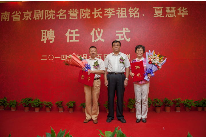 趙素萍在致辭中指出京劇作為中華文化瑰寶,行當(dāng)全面,表演成熟,氣勢宏美,既是近代中國戲曲的代表,又是中國的國粹。河南的京劇事業(yè)在省委、省政府的高度重視、大力支持下,和豫劇等地方戲一樣,呈現(xiàn)出了良好的發(fā)展勢頭。特別是近年來,在李祖銘先生、夏慧華先生的精心指導(dǎo)下,也可以說是手把手地傳帶下,河南京劇先后推出了《龍鳳呈祥》、《野豬林》、《劉伯溫》等作品,河南京劇院也由日漸衰微,重新獲得新生。但由于種種原因,同豫劇等地方戲相比,河南的京劇藝術(shù)發(fā)展還存在著一定差距和問題,還有很大的發(fā)展空間。李祖銘先生是著名的京胡大師,家傳深厚,琴技精純,曾參加《三上桃峰》、《山城圍困戰(zhàn)》、《新爍明珠》等多部京劇作品的音樂唱腔設(shè)計(jì)。夏慧華先生是著名的京劇藝術(shù)家,表演簡潔細(xì)膩、音色甜美寬亮,行腔大方自然。兩位先生都是我國京劇界有影響的大家大師。今天,我們以省政府名義聘請李祖銘先生、夏慧華先生擔(dān)任河南省京劇院名譽(yù)院長,就是想借兩位大師的藝術(shù)智慧和影響力,推動河南京劇以及其他劇種藝術(shù)水平進(jìn)一步提高,獲得更好更快的發(fā)展。