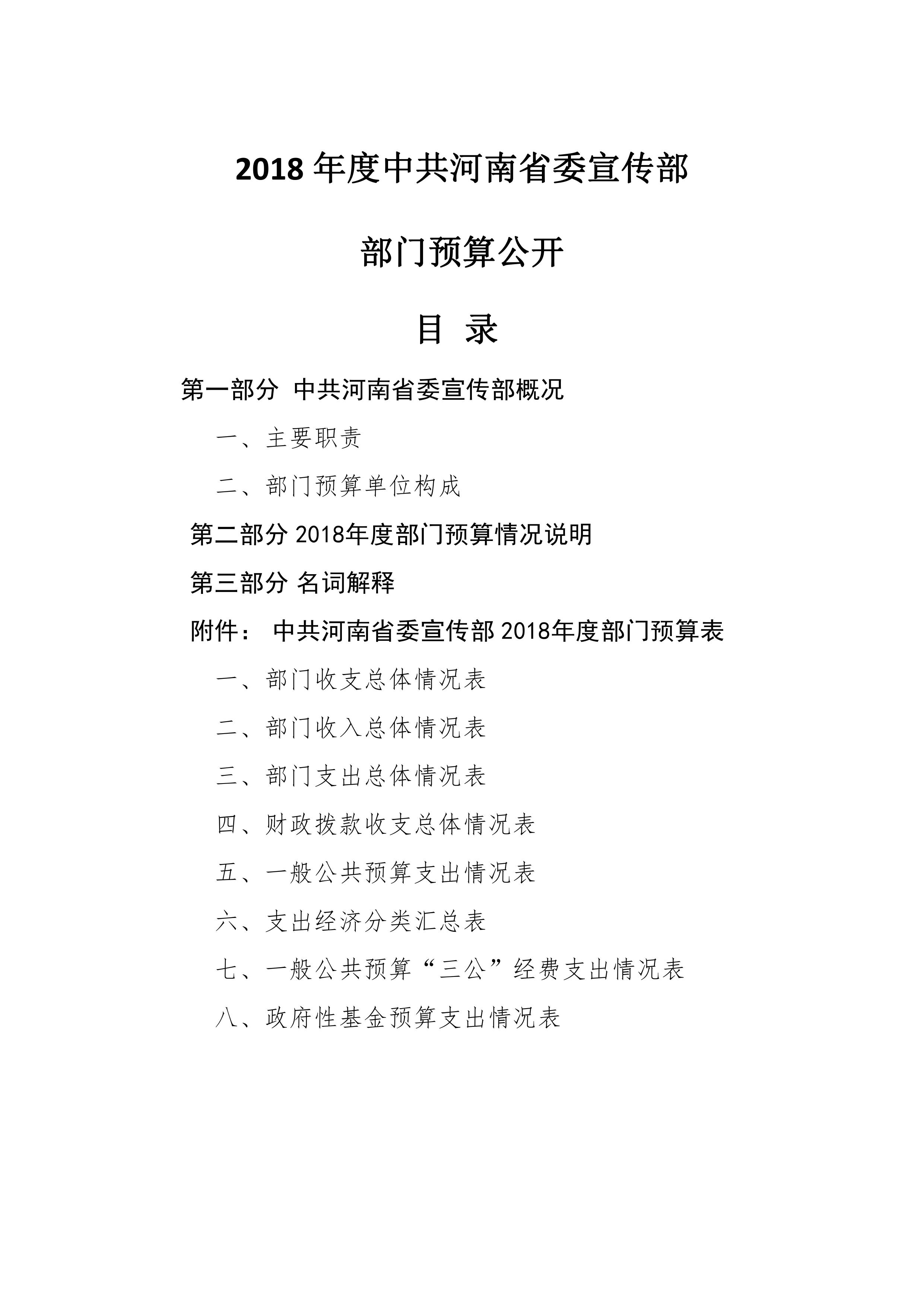 2018年度中共河南省委宣傳部部門預(yù)算公開(kāi)