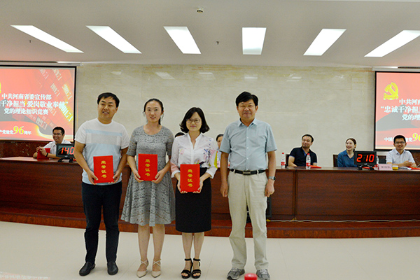 7月7日下午,省委宣傳部舉辦“忠誠干凈擔當 愛崗敬業(yè)奉獻”黨的理論知識競賽,省委網(wǎng)信辦副主任蔡新民同志、省委宣傳部副巡視員趙鋼同志、《黨的生活》雜志社總編趙云龍同志、省委宣傳部副巡視員李文良同志等部領(lǐng)導出席,部機關(guān)全體黨員參加。